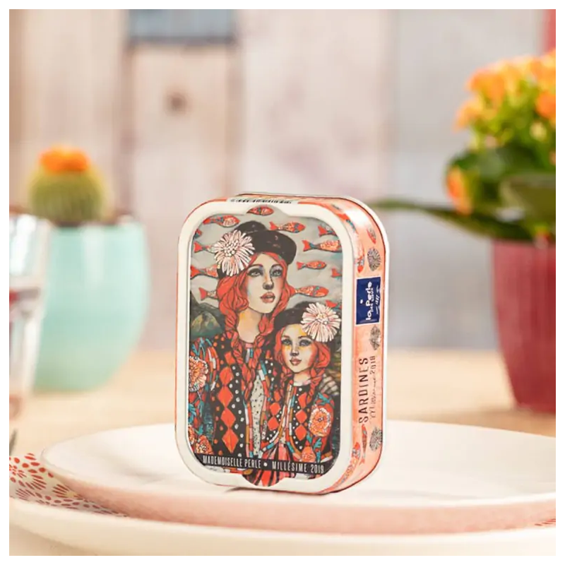 C'est dans cet éblouissant et sublime écrin, que vous pourrez affiner vos sardines millésimées la Perle des Dieux de l'année 2019. Des sardines pêchées au meilleur moment de la saison, au large des côtes de Saint-Gilles-Croix-de-Vie. Dans leur boîte de conserve, imprégnées de leur huile d'olive vierge extra, les sardines peuvent se confirent jusqu’à 10 ans. Elles deviendront alors fondantes et offriront un arôme inégalable.